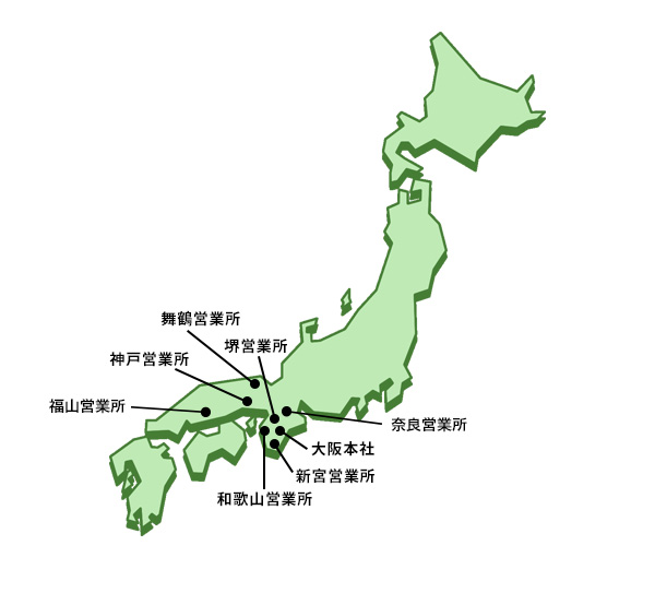 大阪市内・堺市全域・茨城市・交野市・門真市・四条畷市・島本町・吹田市・摂津市・大東市・高槻市・田尻町・忠岡町・豊中市・豊能町・寝屋川市・能勢町・枚方市・岬町・箕面市・守口市・東大阪市・八尾市・羽曳野市・松原市・藤井寺市・和泉市・岸和田市・富田林市・河内長野市・千早赤阪村・貝塚市・泉大津市・高石市・泉南市・阪南市
