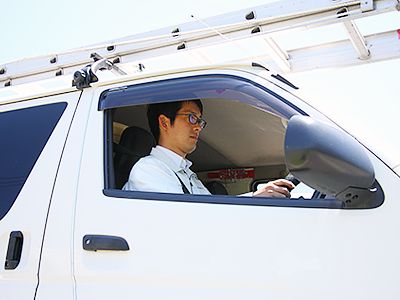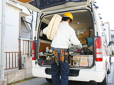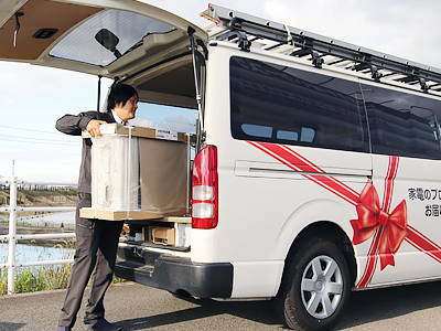 エアコン工事技術者が、専用車でお客様のお宅へ商品を配送します。