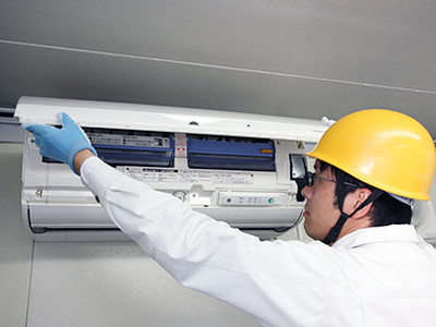 エアコン工事技術者が、室内機を所定の位置に取り付けます。