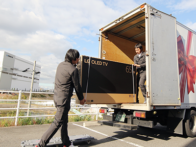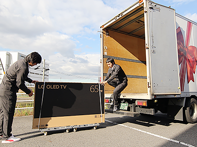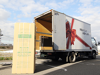 大手家電量販店様の物流センターより商品を受け取り、配送用トラックに積み込みます。